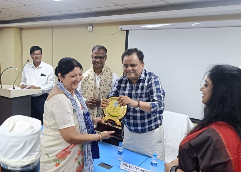 The West Bengal State Council of Higher Education felicitated Colleges who have got an A grade and above in NAAC Accreditation. Prof. Siuli Sarkar, Principal, Lady Brabourne College receiving the memento from The Minister of Education, Shri Bratya Basu.